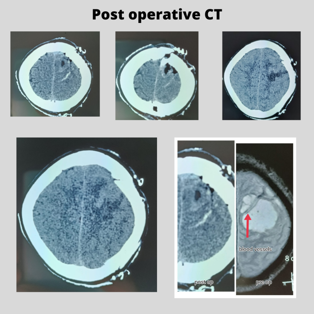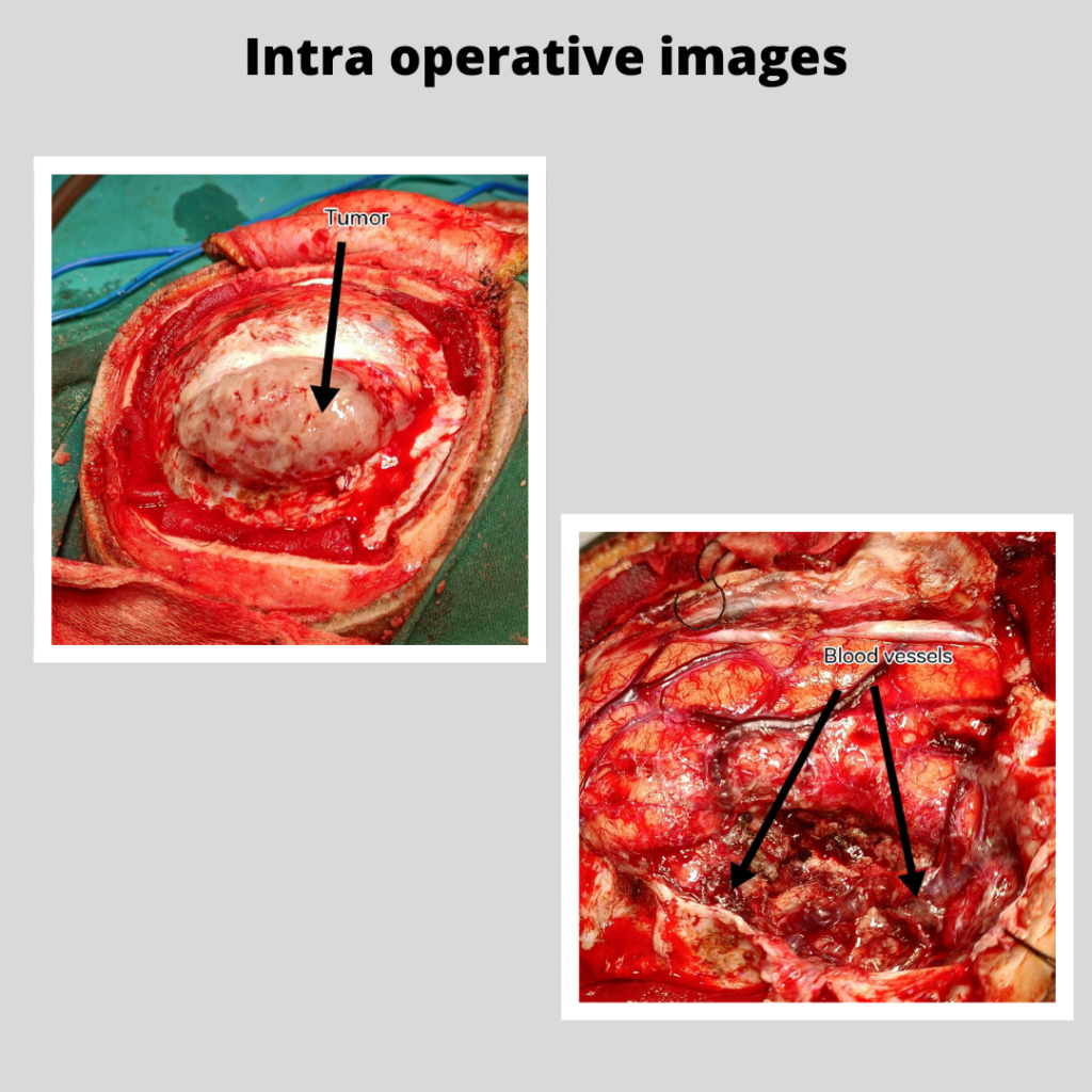 Yesterday patient underwent surgery and complete excision of the tumor was achieved and all the blood vessels crossing the tumor were preserved.
